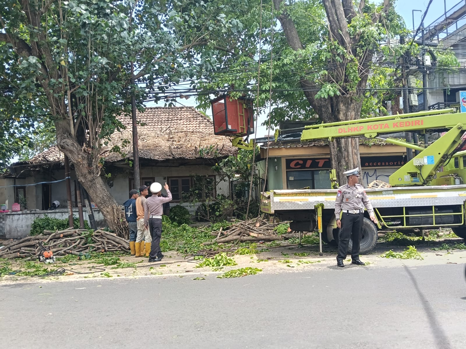 Kasat Lantas Polres Kediri Kota, AKP Afandy Dwi Takdir, S.T.K., S.I.K., menjelaskan bahwa pihaknya melakukan pemantauan langsung proses pemangkasan yang dilakukan oleh tim DLHKP, sekaligus memberikan imbauan kepada masyarakat yang melintas di sekitar lokasi.