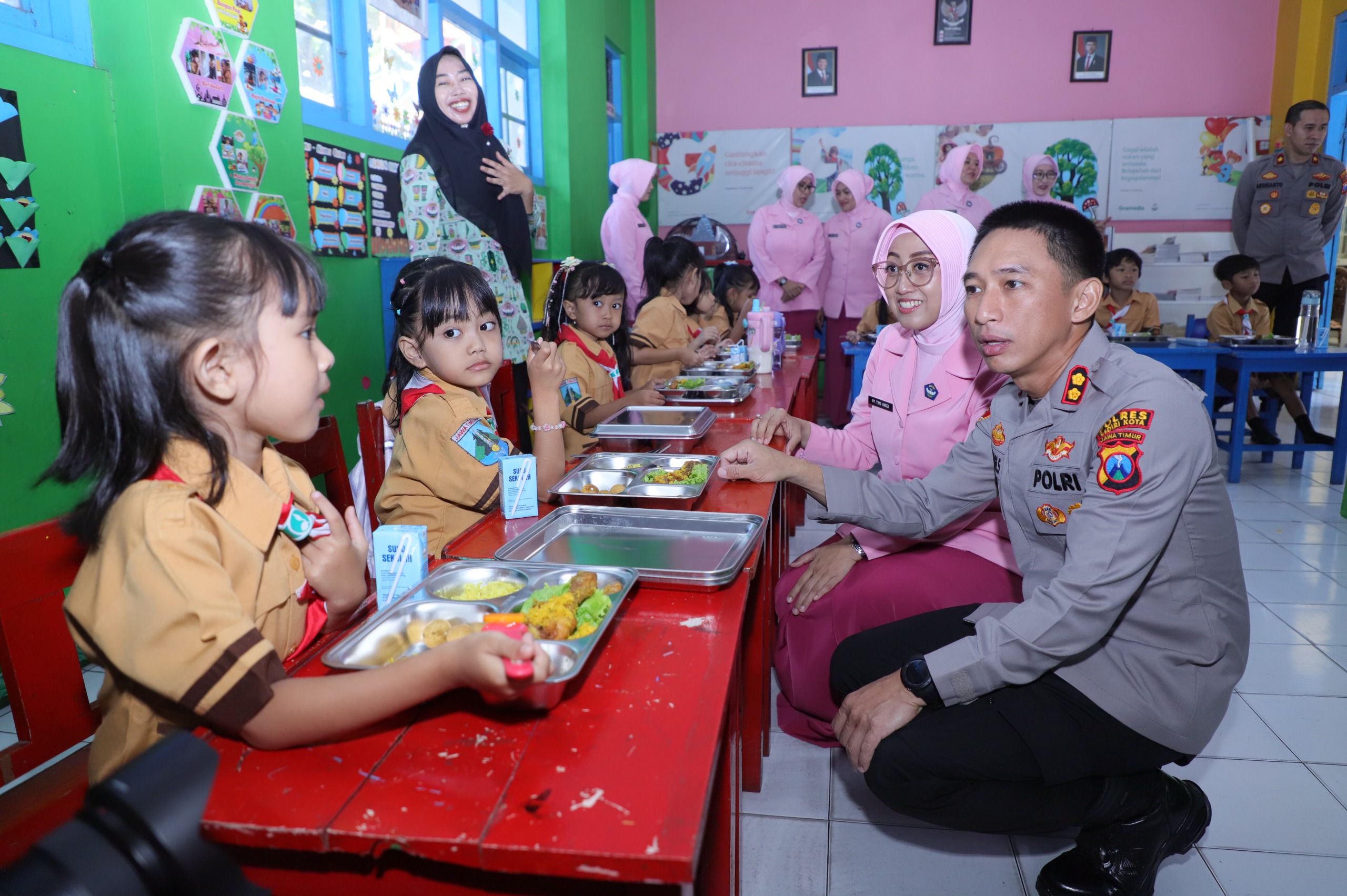 KediriSelaluDiHati – Kapolres Kediri Kota AKBP Anggi Saputra Ibrahim bersama Ketua Bhayangkari Cabang Kediri Kota, Ny Anggi Saputra, meninjau langsung pendistribusian program Makan Bergizi Gratis (MBG) di TK Kemala Bhayangkari 42, Kota Kediri, Jumat (9/1/2026) pagi.