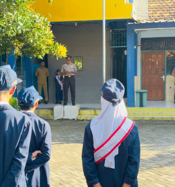 Kediriselaludihati.com – Polres Kediri Kota melalui Bhabinkamtibmas Kelurahan Bandar Lor melaksanakan pembinaan kepada pelajar dengan menjadi pembina upacara di SMP Muhammadiyah Kediri, pada Senin (13/4/2026) pagi. Kegiatan tersebut bertujuan untuk memberikan edukasi tentang kedisiplinan, pencegahan kenakalan remaja, bahaya narkoba, serta anti-bullying di lingkungan sekolah.