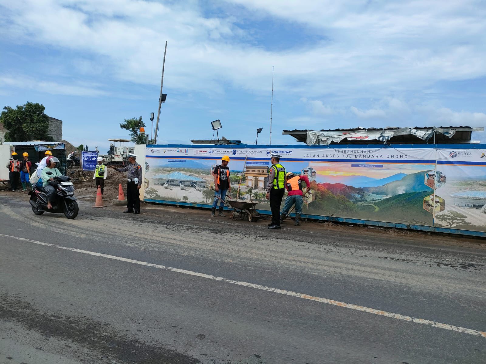 Imbauan disampaikan langsung oleh Kanit Kamsel Satlantas Polres Kediri Kota bersama sejumlah anggota kepada para pekerja dan pihak pelaksana proyek yang beraktivitas di lokasi pembangunan jalan tol.