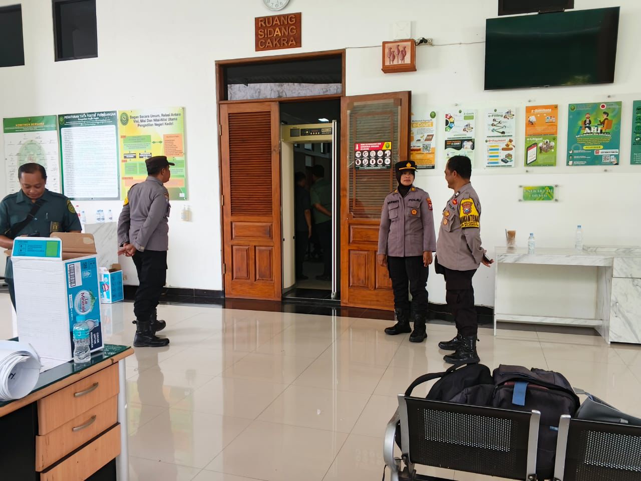 Untuk memastikan jalannya persidangan berlangsung aman dan tertib, Bhabinkamtibmas Kelurahan Mojoroto Aiptu Andri Jatmiko bersama tim melakukan penjagaan ketat di area pengadilan, termasuk di pintu masuk, ruang tunggu, dan sekitar lokasi persidangan.