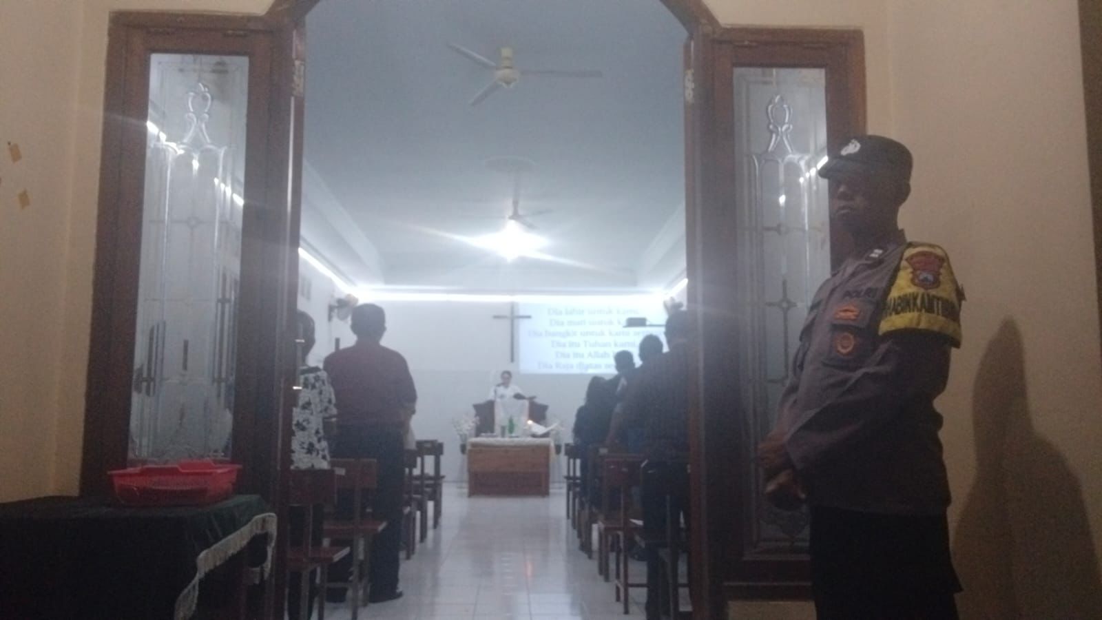 Bhabinkamtibmas Kalipang Kediri Hadir Jaga Kekhusyukan Perayaan Umat Nasrani