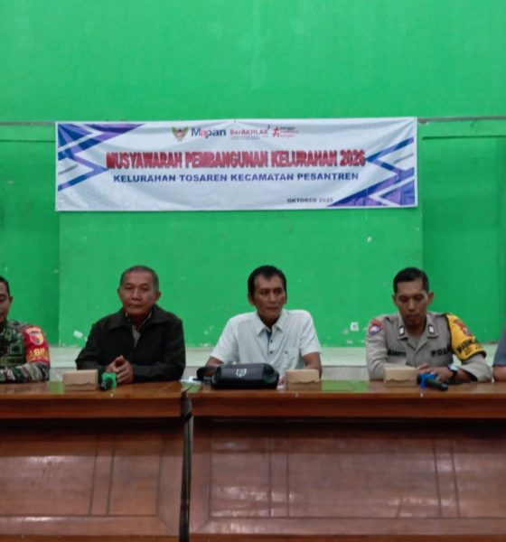 Kediriselaludihati.com – Pemerintah Kelurahan Tosaren, Kecamatan Pesantren, Kota Kediri menggelar Musyawarah Kelurahan Program Merata Tahun 2026 di Gedung Serba Guna Kelurahan Tosaren, Kecamatan Pesantren, Kota Kediri, pada Jumat malam (31/10/2025). Kegiatan yang dimulai pukul 19.00 WIB itu turut dipantau langsung oleh Bhabinkamtibmas Tosaren, Aiptu Yulianto TM, bersama unsur tiga pilar.