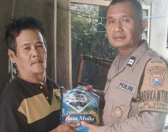 KediriSelaluDiHati – habinkamtibmas Kelurahan Dermo, Polsek Mojoroto, melaksanakan kegiatan JUMARI (Jumat Berkah Berbagi) dengan menyalurkan bantuan beras kepada warga lanjut usia (lansia) di wilayah Kelurahan Dermo, Kecamatan Mojoroto, Kota Kediri, Jumat (9/1/2026).
