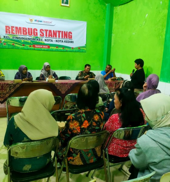 Kediriselaludihati.com – Upaya pencegahan stunting di tingkat kelurahan terus diperkuat melalui sinergi lintas sektor. Bhabinkamtibmas Kelurahan Ringinanom, Polsek Kediri Kota Aipda Eko Prayitno, menghadiri kegiatan sambang sekaligus rapat koordinasi “Rembug Stunting” yang digelar di Kantor Kelurahan Ringinanom, Kecamatan Kota Kediri, pada Kamis (15/1/2026) pagi.