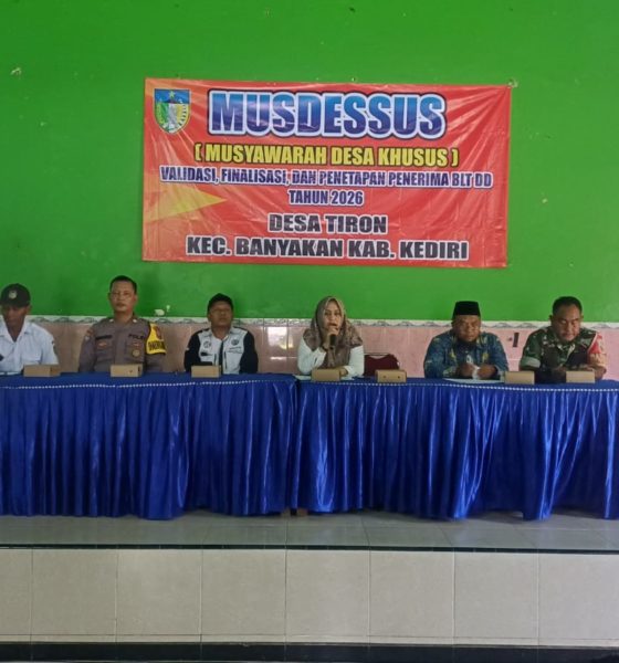Kediriselaludihati.com – Musyawarah Desa Khusus (Musdesus) terkait validasi, finalisasi, dan penetapan Bantuan Langsung Tunai Dana Desa (BLT DD) Tahun 2026 di Desa Tiron, Kecamatan Banyakan, Kabupaten Kediri berlangsung lancar dan kondusif, pada Rabu (1/4/2026).