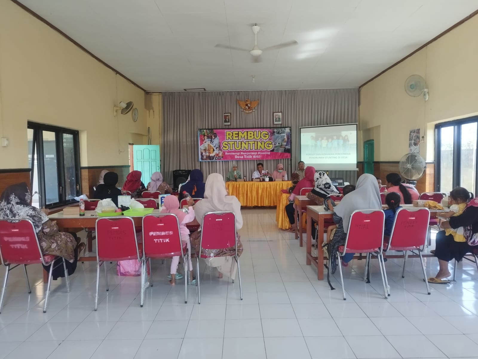 Hadir dalam kegiatan, Kades Titik Ahmad Munir, Bhabinkamtibmas Aipda Heru Tri P. Ahli Gizi Puskesmas Semen Ibu Niken. Pendamping Desa Sri. Kader Pembangunan Manusia (KPM) Desa Titik, Ibu dan Balita Stunting Desa Titik sejumlah 9 anak.