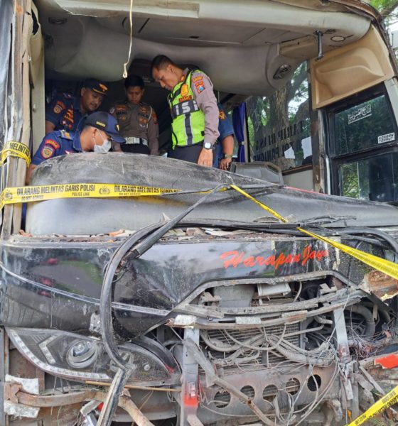 Kediriselaludihati – Satuan Lalu Lintas (Satlantas) Polres Kediri Kota melakukan pemeriksaan terhadap Bus Harapan Jaya yang terlibat kecelakaan lalu lintas di Simpang Empat Muning, Kecamatan Mojoroto, Kota Kediri. Pemeriksaan kendaraan dilakukan di Kantor Dinas Perhubungan (Dishub) Kota Kediri, Senin (26/1/2026).
