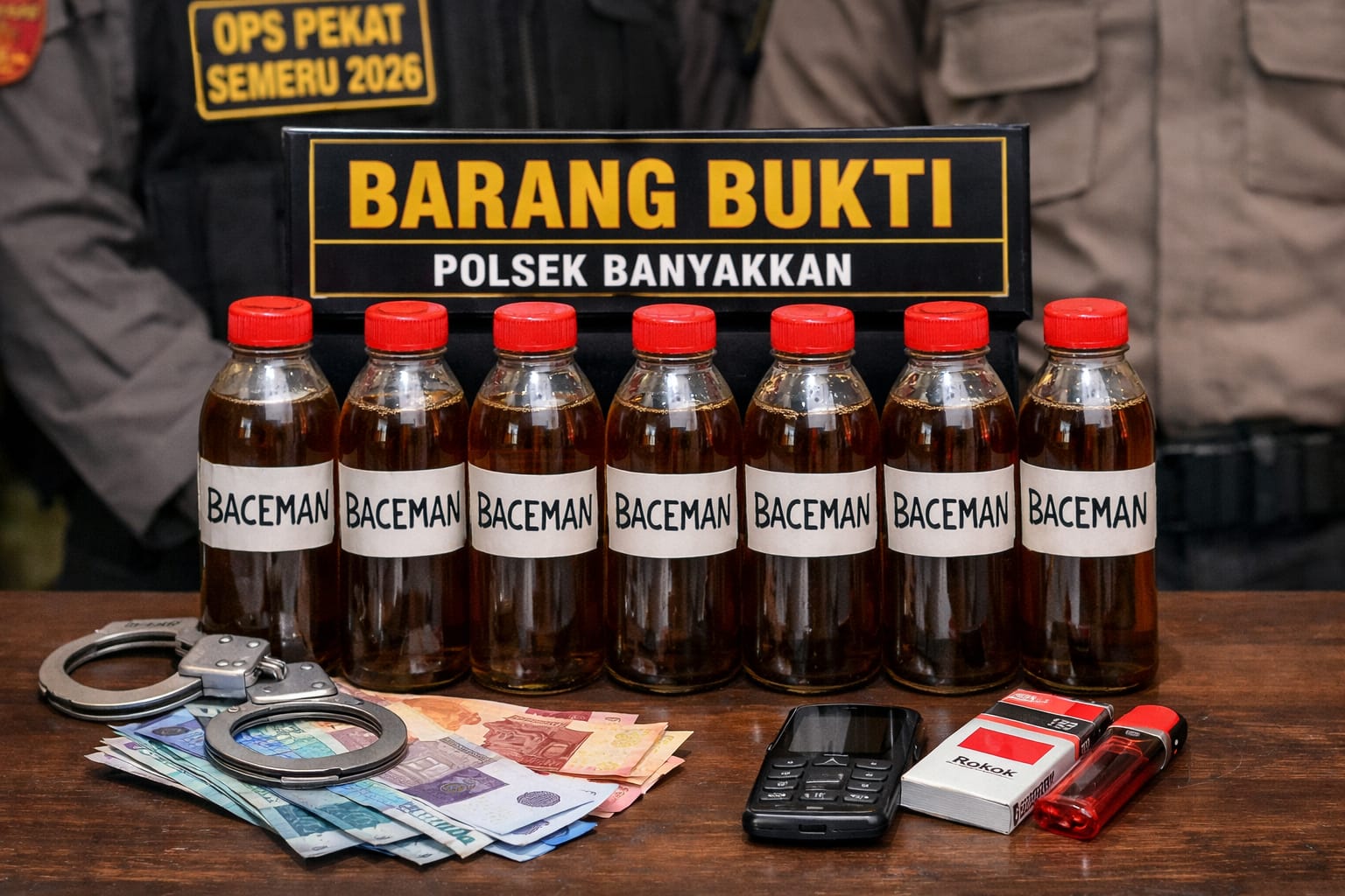 Pengungkapan tersebut tercatat dalam Laporan Harian Operasi Pekat Semeru 2026 tertanggal Jumat (27/2/2026). Penindakan bermula dari laporan masyarakat yang resah atas aktivitas penjualan minuman keras tanpa izin di sekitar warung tersangka di Dusun Sendang, Desa Sendang, Kecamatan Banyakkan.