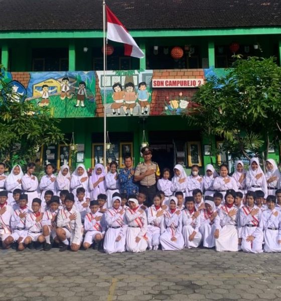 Kediriselaludihati.com – Bhabinkamtibmas Kelurahan Campurejo, Polsek Mojoroto, Polres Kediri Kota melaksanakan kegiatan pembinaan di lingkungan sekolah dengan menjadi pembina upacara di SDN Campurejo 2, Kota Kediri, pada Senin (27/4/2026).
