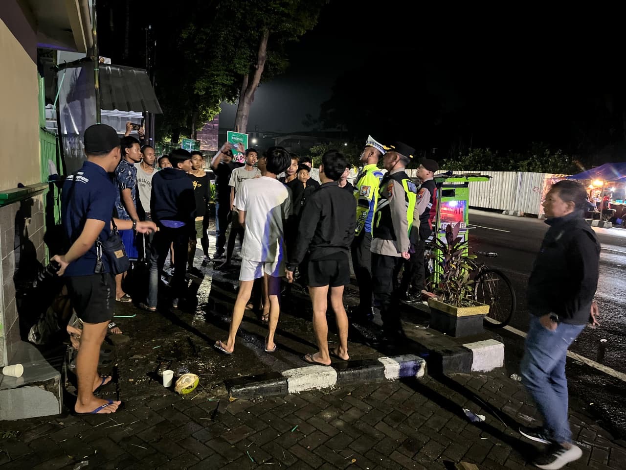 Petugas juga memberikan imbauan kepada warga yang masih berkumpul agar tetap menjaga ketertiban umum serta menghindari aktivitas yang berpotensi mengganggu kenyamanan masyarakat lainnya.