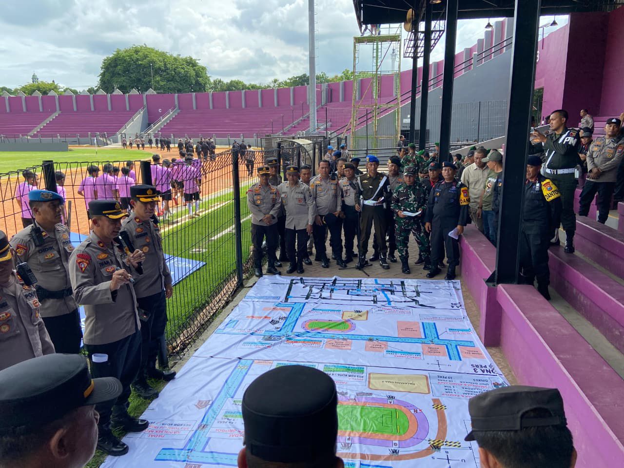 Kabag Ops AKP Iwan Setyo Budhi menegaskan pembagian zona pengamanan sesuai Perpol Nomor 10 Tahun 2022. Zona 1 menjadi tanggung jawab penuh panitia pelaksana melalui steward, sementara TNI–Polri mengamankan zona luar.