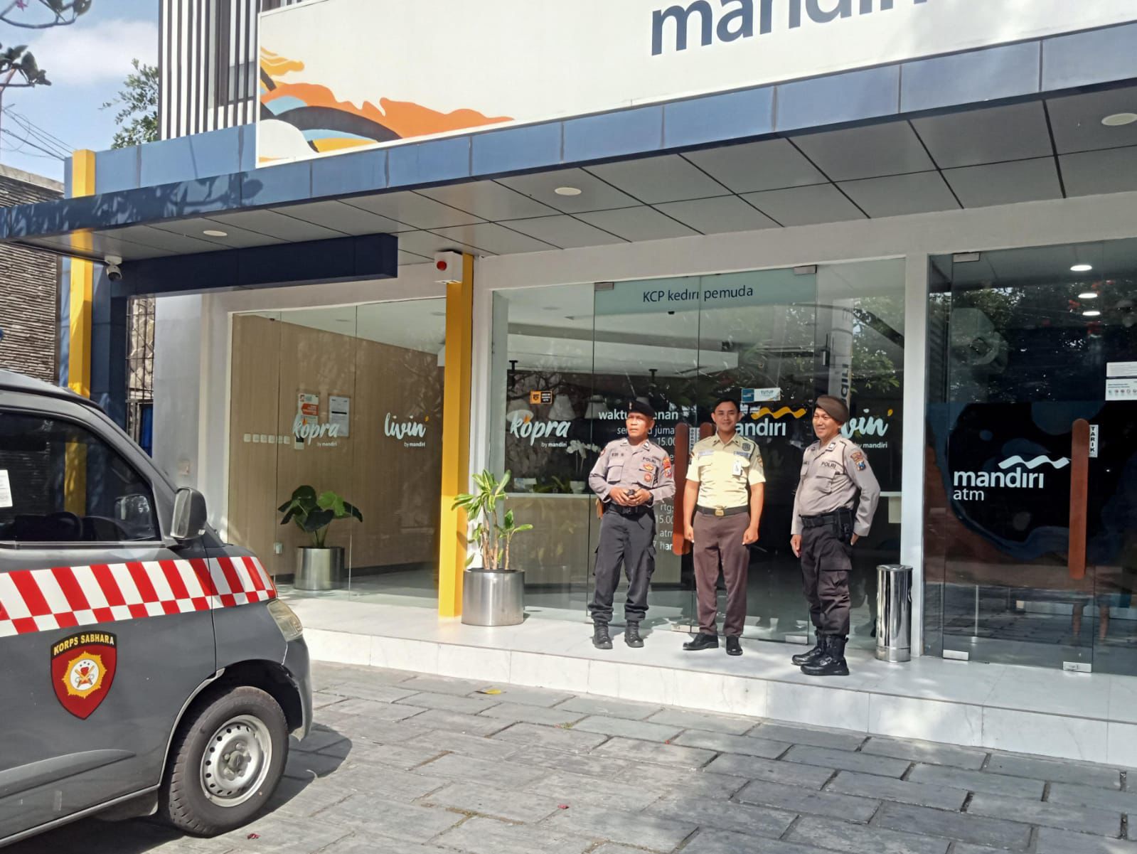 Lokasinya di Gedung Rupatama Polres Kediri Kota. Petugas adalah Kasipropam Ipda Didik Suryonomor, S.H dan anggota Sipropam Polres Kediri Kota. Petugas melaksanakan Was Pam Pers Kegiatan Kapolres Kediri Kota AKBP Wahyudi, S.I.K., M.H. Dalam rangka Penyaluran Bantuan Tunai PKL dan Warung (BTPKLW) Polres Kediri Kota.