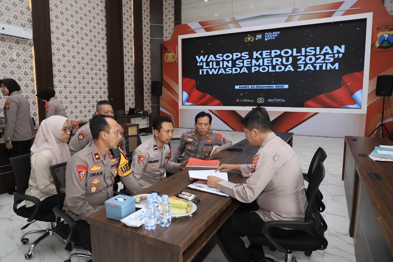 Kediriselaludihati – Inspektorat Pengawasan Daerah (Itwasda) Polda Jawa Timur melaksanakan kegiatan Pengawasan Operasi (Wasops) Operasi Lilin Semeru 2025 di Rupatama Polres Kediri Kota, Rabu (24/12/2025). Kegiatan ini bertujuan memastikan pelaksanaan operasi pengamanan Natal dan Tahun Baru berjalan sesuai prosedur, efektif, dan akuntabel.