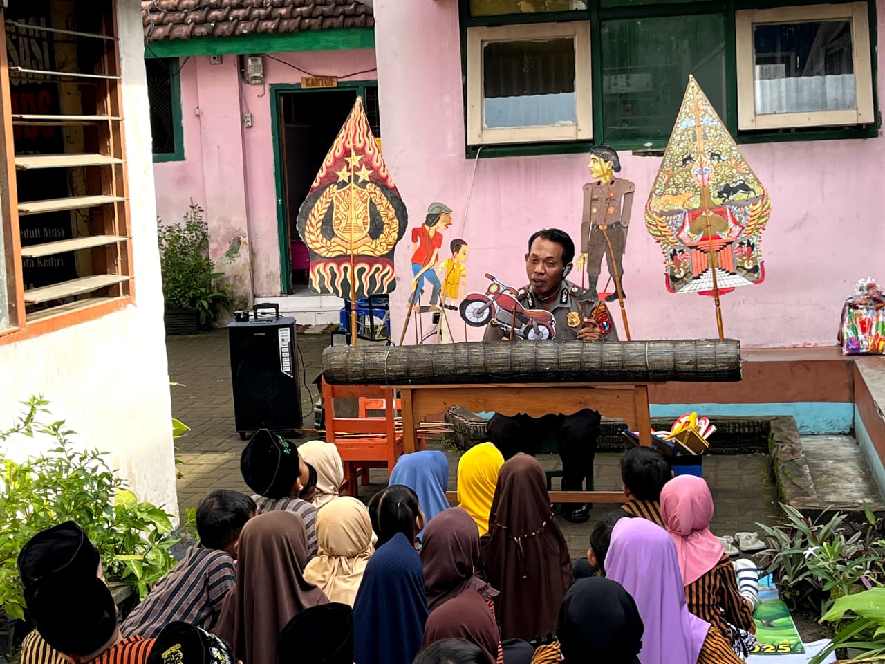 Kediriselaludihati – Kapolsek Kediri Kota Kompol Bowo Wicaksono, S.H turun langsung menjadi dalang wayang dalam kegiatan Polisi Sahabat Anak yang digelar di TK Dharma Wanita, Kelurahan Balowerti, Kecamatan Kediri Kota, Rabu (11/2/2026). Kegiatan ini merupakan bagian dari sosialisasi Operasi Keselamatan Semeru 2026 dengan tujuan menanamkan budaya tertib berlalu lintas sejak usia dini.