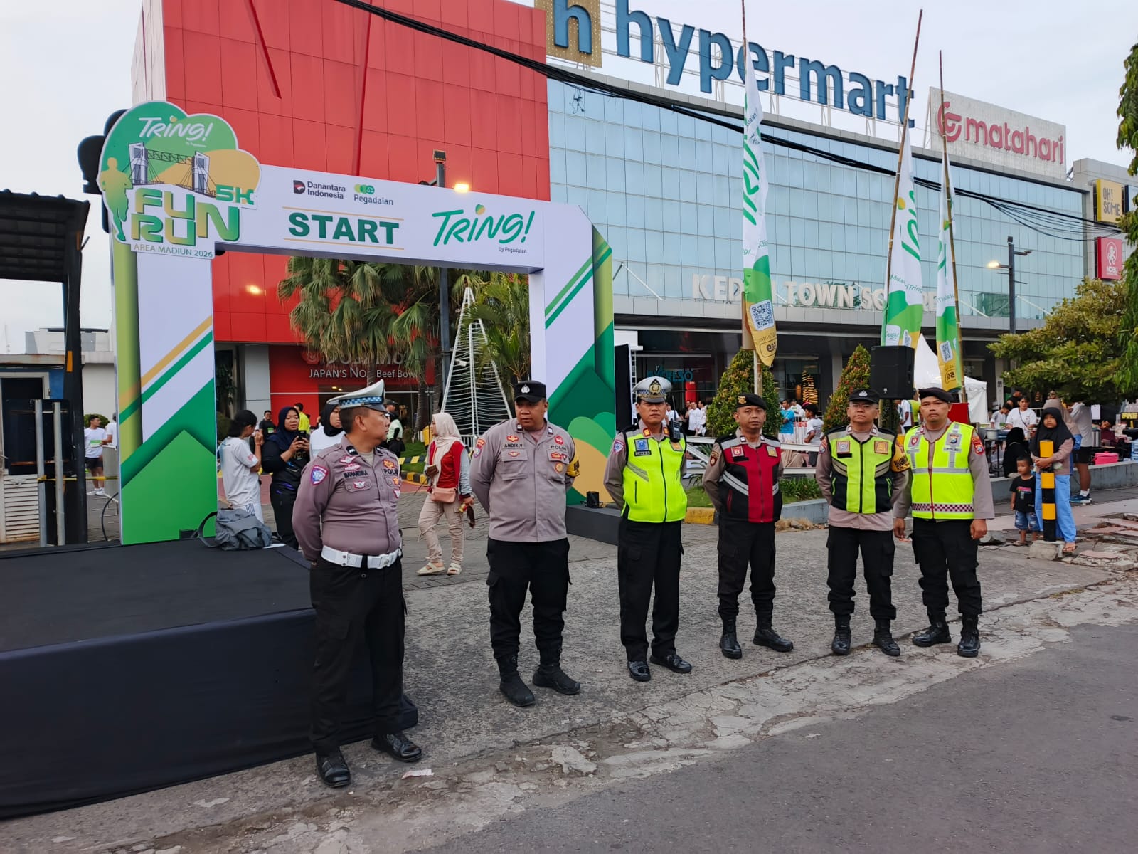 Kapolsek Kediri Kota Kompol Bowo Wicaksono, S.Sos. menyampaikan bahwa kegiatan Tringi Fun Run 5K berjalan dengan tertib, lancar, dan aman berkat kerja sama antara panitia, aparat keamanan, serta dukungan masyarakat.