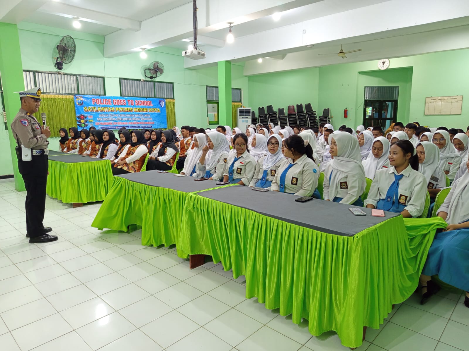 Polreskedirikota — Satuan Lalu Lintas Polres Kediri Kota melalui Unit Keamanan dan Keselamatan (Kamsel) menggelar kegiatan Police Goes to School di SMK Negeri 3 Kota Kediri, Senin (9/2/2026). Kegiatan ini menjadi bagian dari rangkaian Operasi Keselamatan Semeru 2026, dengan sasaran utama pelajar sebagai kelompok usia yang rentan terhadap kecelakaan lalu lintas.