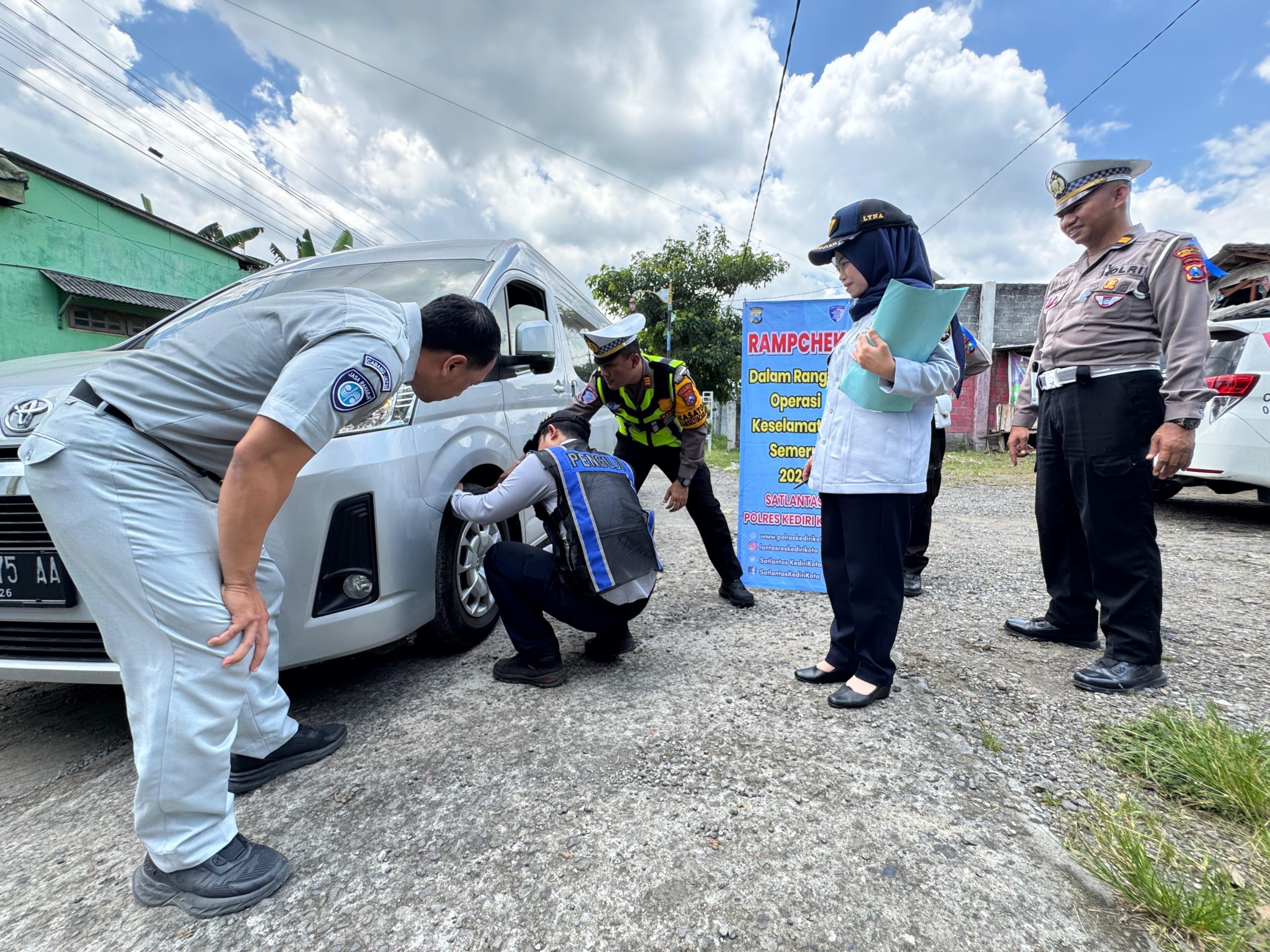 Kediriselaludihati – — Jajaran Satlantas Polres Kediri Kota melaksanakan kegiatan ramp check (ramcek) dalam rangka Operasi Keselamatan Semeru 2026, Rabu (4/2/2026). Kegiatan yang dimulai sekitar pukul 11.30 WIB tersebut dipimpin langsung oleh Kasat Lantas Polres Kediri Kota, AKP Tutud Yudho Prastyawan, S.H., bersama Kanit Kamsel dan melibatkan unsur Dinas Perhubungan.