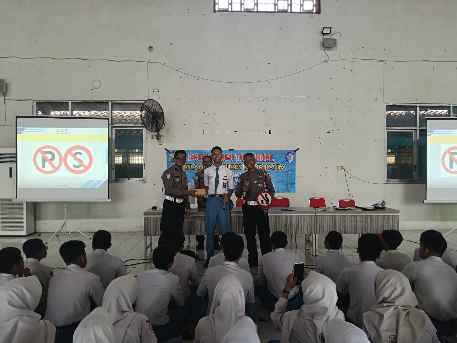 Kediriselaludihati -Satuan Lalu Lintas Polres Kediri Kota menggelar kegiatan “Police Goes To School” di SMA Negeri 4 Kota Kediri, Senin (2/3/2026). Kegiatan yang berlangsung pukul 08.30 hingga 10.00 WIB itu diisi dengan materi safety riding dan etika berlalu lintas bagi para siswa.