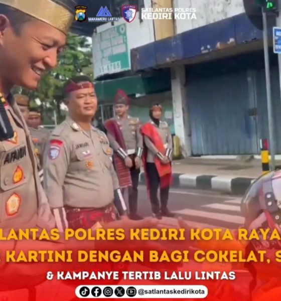 Kediriselaludihati.com – Suasana berbeda tampak di sejumlah titik jalan di Kota Kediri, Senin (22/4/2025). Anggota Satuan Lalu Lintas (Satlantas) Polres Kediri Kota turun ke jalan mengenakan pakaian adat dalam rangka memperingati Hari Kartini.