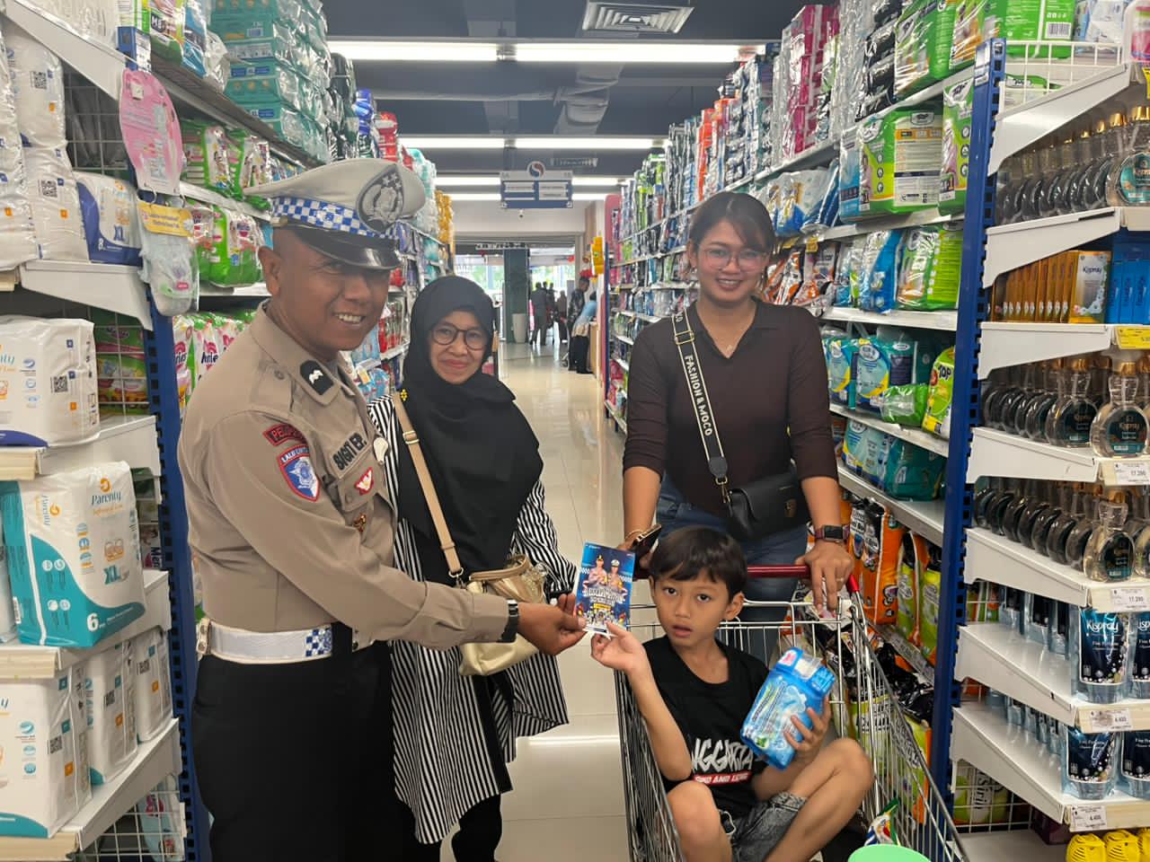 Unit Keamanan dan Keselamatan (Kamsel) Satlantas yang dipimpin Iptu Mujani, SH turun langsung ke lokasi untuk menyampaikan pesan-pesan keselamatan berlalu lintas kepada pengunjung pusat perbelanjaan dan masyarakat sekitar.