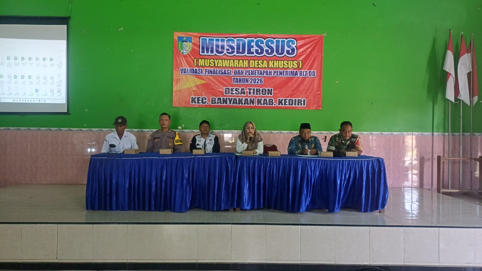 Kediriselaludihati.com – Musyawarah Desa Khusus (Musdesus) terkait validasi, finalisasi, dan penetapan Bantuan Langsung Tunai Dana Desa (BLT DD) Tahun 2026 di Desa Tiron, Kecamatan Banyakan, Kabupaten Kediri berlangsung lancar dan kondusif, pada Rabu (1/4/2026).