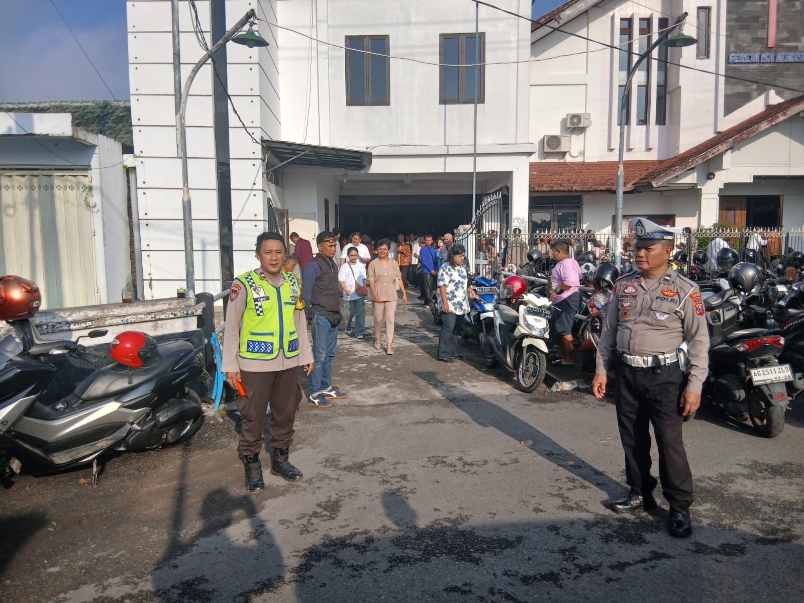 Petugas juga menyampaikan imbauan kepada jemaat agar turut menjaga keamanan dan ketertiban selama kegiatan berlangsung.