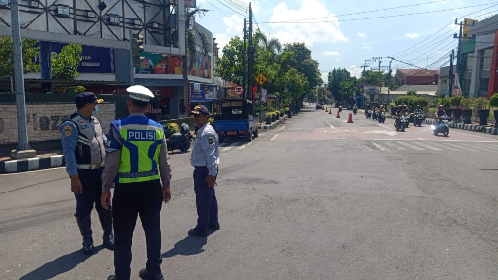 Kegiatan di lapangan dipimpin Perwira Pengendali Kanit Turjawali Satlantas Polres Kediri Kota bersama personel BM Turjagwali cadangan. Petugas melakukan pengaturan arus, pemantauan situasi, serta memastikan pengguna jalan mematuhi arahan yang telah ditentukan.