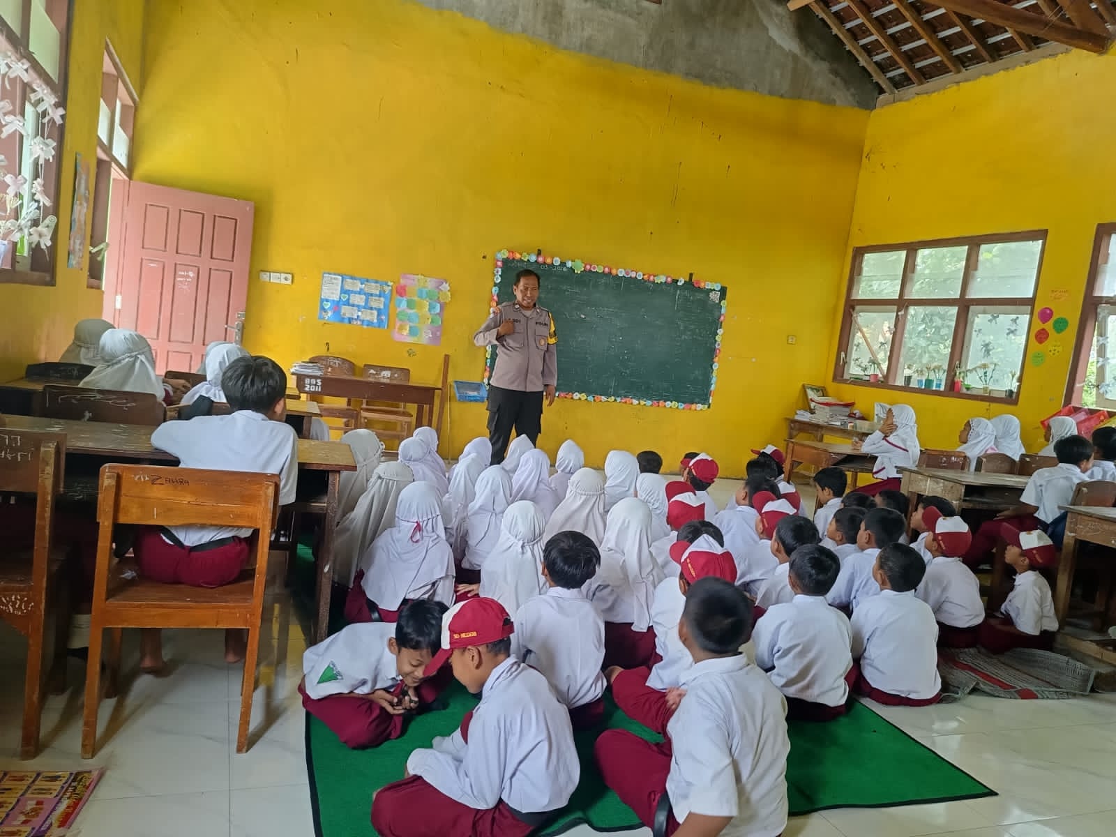 Anggota Bhabinkamtibmas Aiptu Dedi Setiawan menyampaikan pesan-pesan keamanan dan ketertiban masyarakat khususnya selama bulan Ramadhan. Edukasi diberikan secara sederhana dan komunikatif agar mudah dipahami anak-anak usia sekolah dasar.