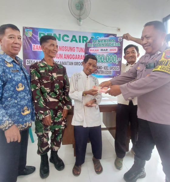 Kediriselaludihati.com – Bhabinkamtibmas Desa Kalipang, Kecamatan Grogol, Kabupaten Kediri, melakukan pemantauan kegiatan pencairan Bantuan Langsung Tunai Dana Desa (BLT-DD) Tahun Anggaran 2026, pada Selasa (17/3/2026).
