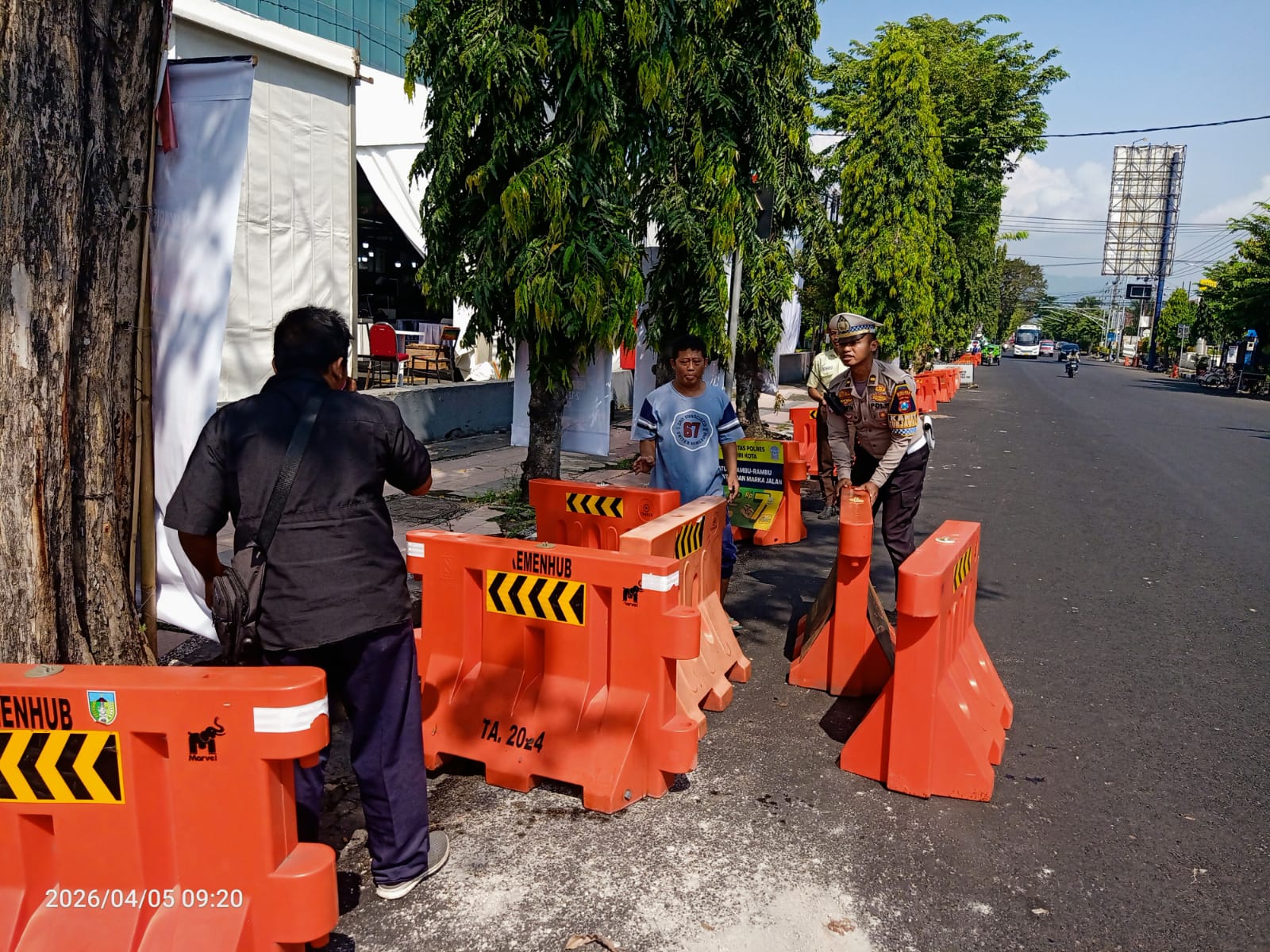 Kegiatan yang dimulai sekitar pukul 09.00 WIB tersebut dipimpin langsung oleh Kasat Lantas Polres Kediri Kota Tutud Yudho Prastyawan bersama Kanit Turjawali. Sejumlah personel dari Unit Turjawali diterjunkan untuk melakukan pengaturan sekaligus pemasangan pembatas jalan.