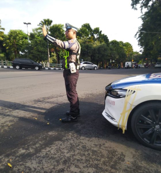 Dalam kegiatan tersebut, personel Satlantas melakukan pemantauan langsung arus lalu lintas serta mengantisipasi potensi gangguan keamanan di sejumlah ruas jalan utama Kota Kediri.