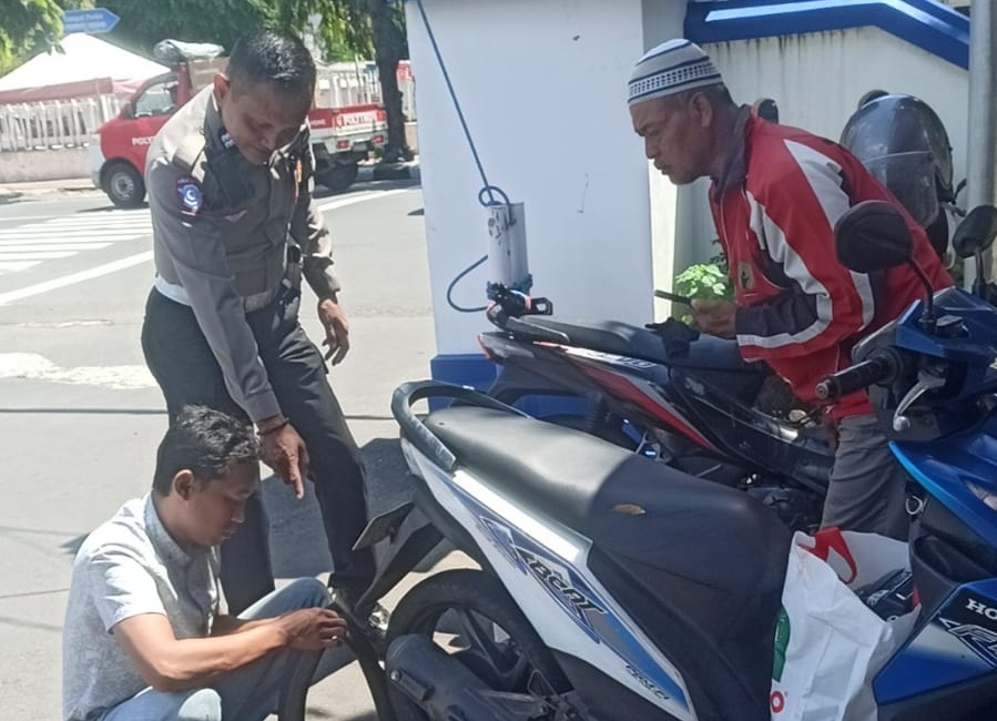 Dalam kondisi hari libur, pengendara kesulitan menemukan tempat tambal ban karena sebagian besar bengkel tutup. Menyikapi hal tersebut, Aiptu Agung langsung berinisiatif mencarikan solusi dengan menghubungi layanan tambal ban.