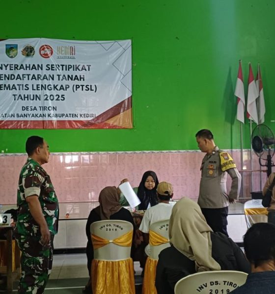 Kediriselaludihati.com – Pembagian sertifikat Pendaftaran Tanah Sistematis Lengkap (PTSL) kembali dilaksanakan di Desa Tiron, Kecamatan Banyakan, Kabupaten Kediri, pada Rabu (10/12/2025). Sebanyak 1.000 sertifikat tahap kedua diserahkan kepada warga dengan pengamanan langsung dari Bhabinkamtibmas Polsek Banyakan.