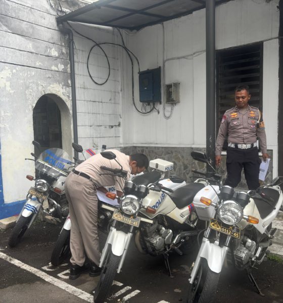 Kediriselaludihati.com – Satuan Lalu Lintas (Satlantas) Polres Kediri Kota melaksanakan pengecekan kendaraan dinas roda dua (Harwat R2) di Markas Komando Satlantas Polres Kediri Kota, pada Kamis (15/1/2026) pagi. Kegiatan ini dilakukan sebagai upaya memastikan seluruh kendaraan operasional berada dalam kondisi laik jalan dan siap digunakan untuk mendukung tugas kepolisian di lapangan.