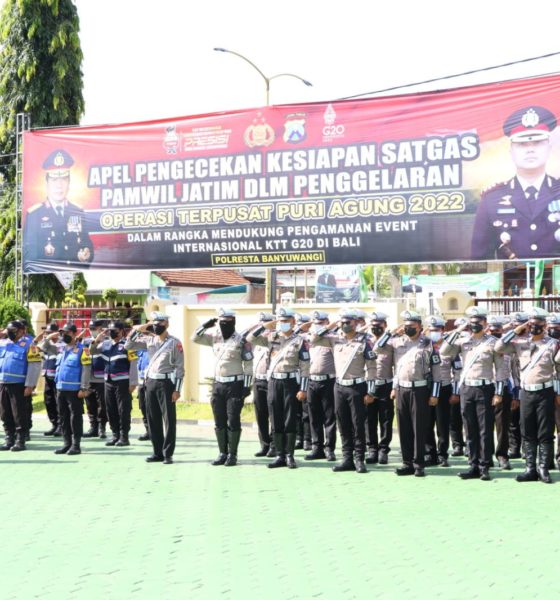 “Kami melakukan pengecekan kesiapan Satgas Pamwil Jatim Dalam Penggelaran Operasi Terpusat Puri Agung 2022 dalam mendukung Pengamanan Event Internasional KTT G20 di Bali,” ujar Kapolresta Banyuwangi.