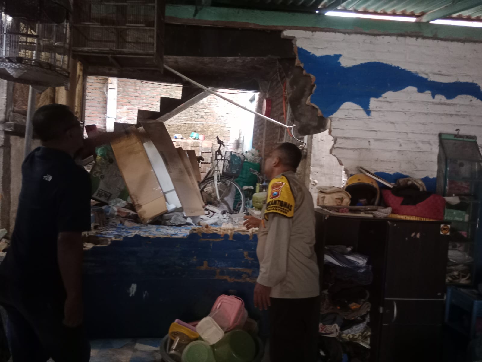 Kegiatan sambang dilakukan sekitar pukul 07.30 WIB oleh Bhabinkamtibmas Kelurahan Singonegaran, Bripka Mohamad Rifai, bersama Lurah Singonegaran dan Ketua RT 27 RW 06. Mereka mendatangi rumah milik Ahmad Jaelani yang berlokasi di RT 27 RW 06, Kelurahan Singonegaran. Rumah tersebut diketahui mengalami kerusakan parah hingga roboh akibat guncangan gempa yang terjadi pada malam sebelumnya.