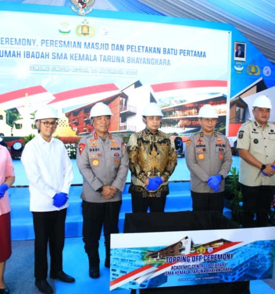 Bogor, 13 November 2025-Wakapolri Komjen Pol. Prof. Dr. Dedi Prasetyo Bandung, 13 November 2025-Wakil Kepala Kepolisian Negara Republik Indonesia (Wakapolri) Komjen Pol. Dr. Dedi Prasetyo memimpin kegiatan topping off(tahap akhir penyelesaian struktur utama bangunan, di mana elemen teratas seperti atap dipasang sebagai simbol bahwa pekerjaan konstruksi kerangka bangunan telah selesai dan proyek memasuki tahap penyelesaian (finishing)pembangunan SMA Kemala Taruna Bhayangkara, Gunung Sindur, Kabupaten Bogor, Kamis (13/11).