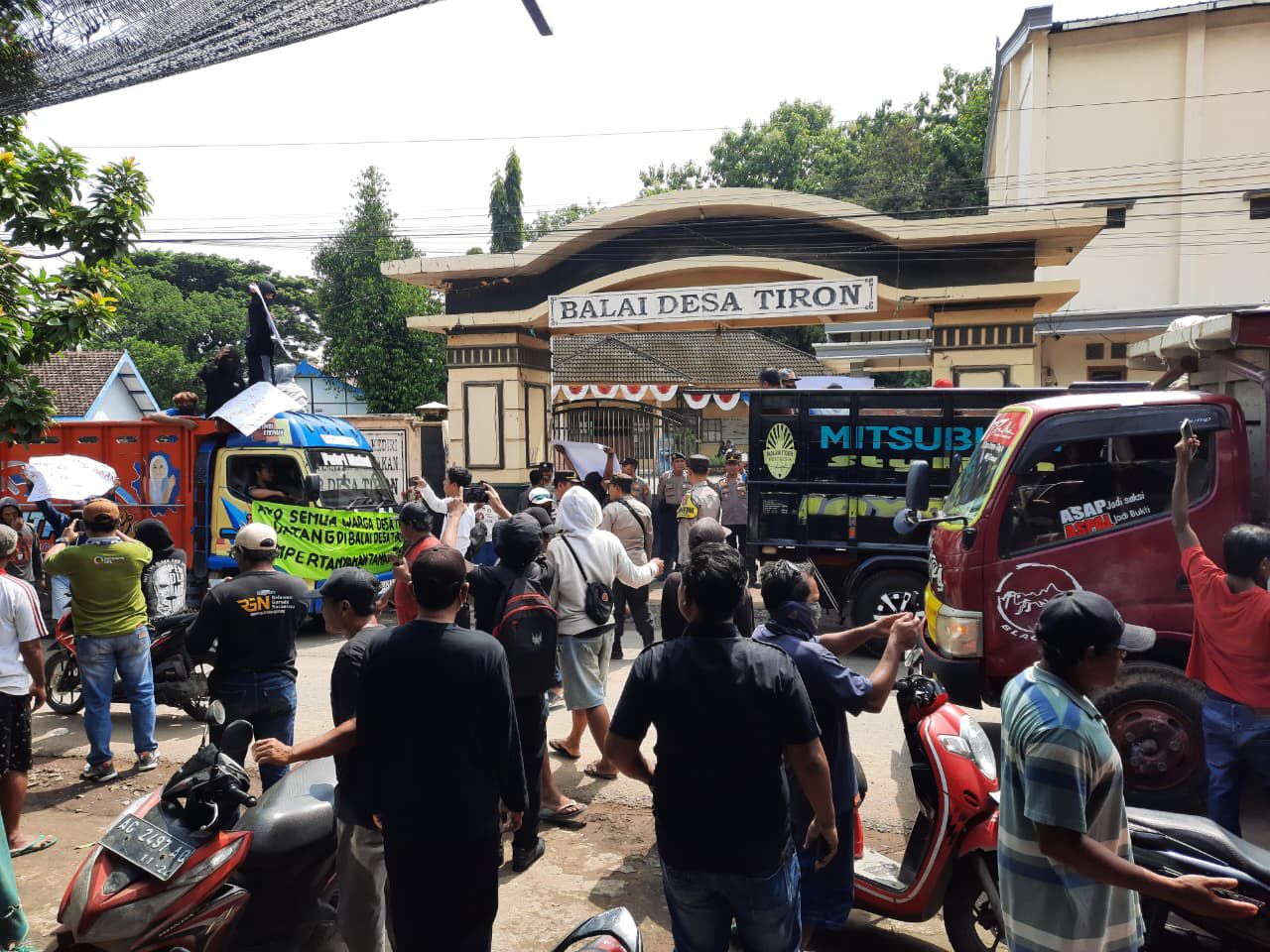 Aksi damai dimulai sejak pukul 08.00 WIB dengan titik kumpul warga di Lapangan Dusun Tiron. Massa kemudian bergerak menuju Balai Desa Tiron sekitar pukul 09.00 WIB dengan membawa kendaraan roda dua, roda empat, serta menggunakan banner dan pengeras suara. Orasi disampaikan oleh koordinator lapangan sebelum dilanjutkan audiensi bersama pemerintah desa.