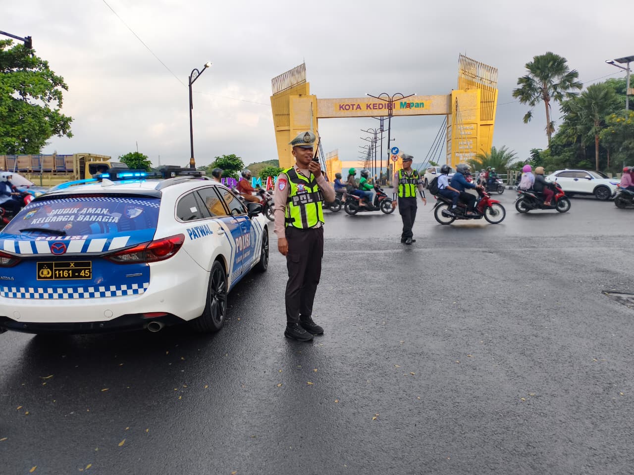 Kegiatan dipimpin Kanit Turjawali Satlantas Polres Kediri Kota dengan melibatkan anggota Patwal Satlantas berkode 45-106. Selain pemantauan arus lalu lintas, personel juga melakukan patroli dialogis untuk memberikan imbauan kepada pengguna jalan agar tetap tertib dan mematuhi aturan berlalu lintas.