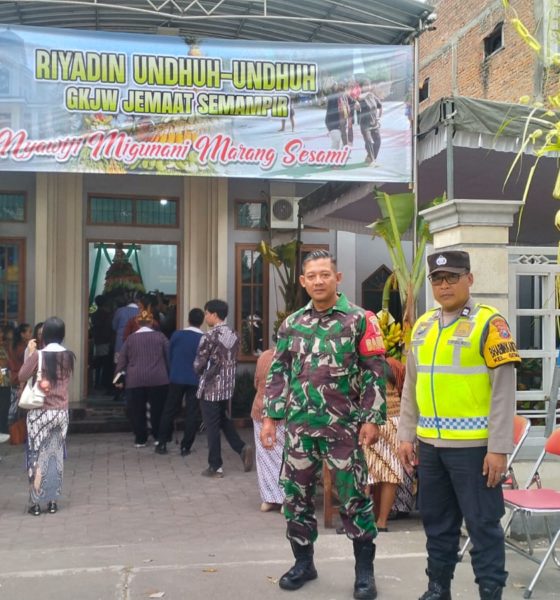 Kediriselaludihati.com – Polsek Kediri Kota melalui Bhabinkamtibmas Kelurahan Semampir Aiptu Dodik Bagoes Riyadi bersama Babinsa Koramil Kota melakukan pengamanan kegiatan Kirab Budaya Gunungan Sayur Mayur dan Seni Tari dalam rangka perayaan Riyadin Undhuh-Undhuh di Gereja Kristen Jawi Wetan (GKJW) Jemaat Semampir, pada Minggu (6/7/2025).