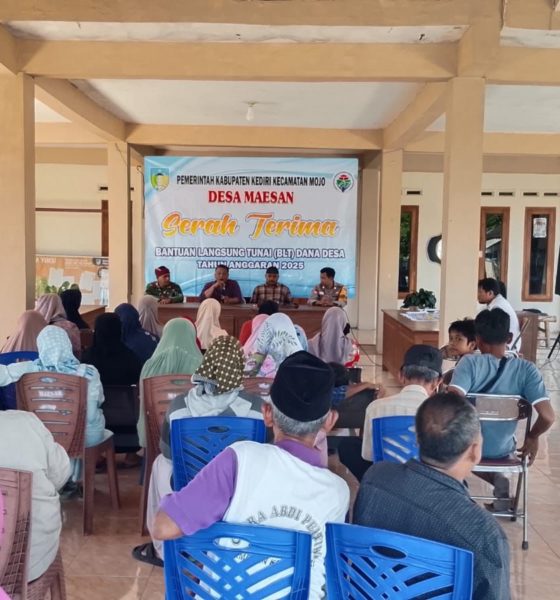 Kediriselaludihati.com – Penyaluran Bantuan Langsung Tunai Dana Desa (BLT DD) Tahun Anggaran 2025 berlangsung di Balai Desa Maesan, Kecamatan Mojo, Kabupaten Kediri, pada Kamis (12/12/2025). Sebanyak 32 Keluarga Penerima Manfaat menerima bantuan senilai Rp300.000 per KPM.
