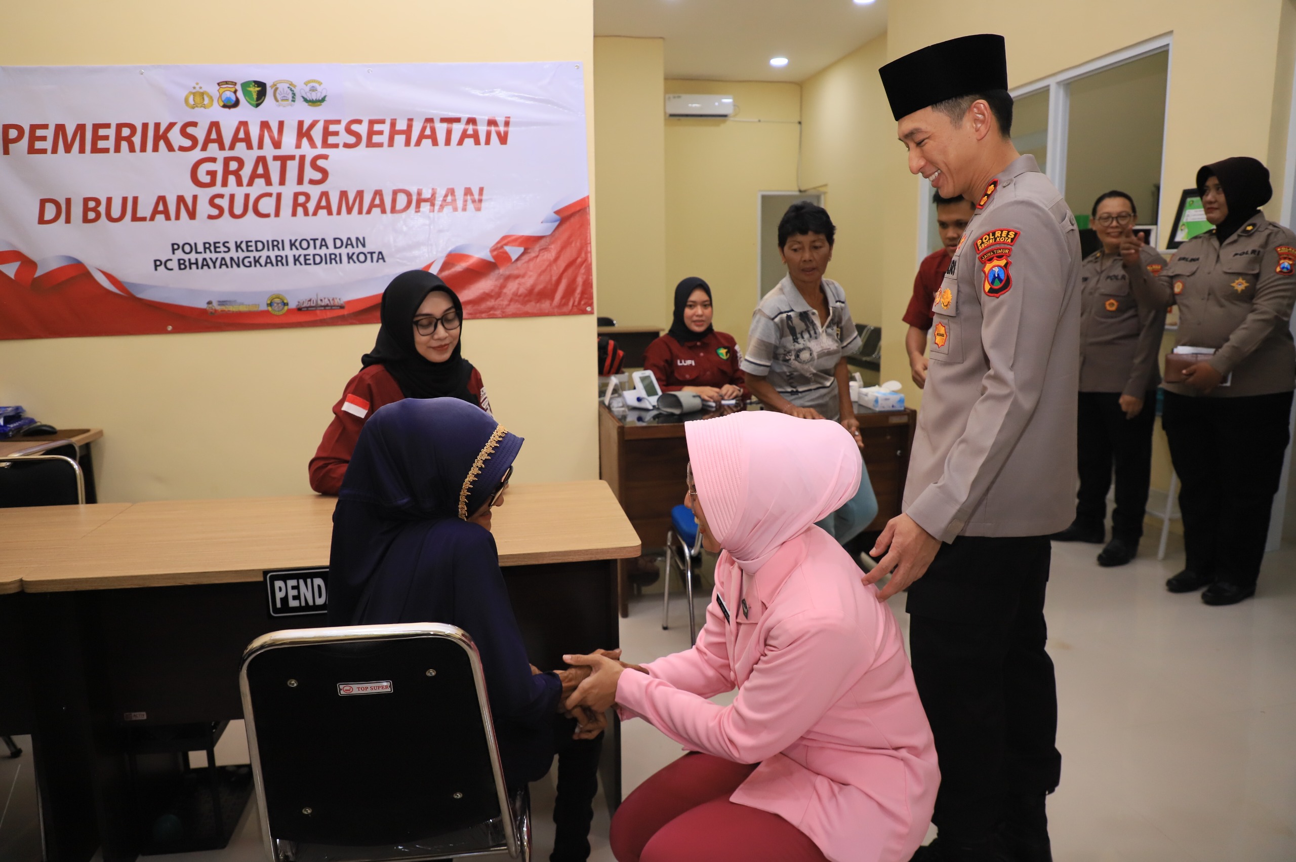 Kegiatan yang berlangsung menjelang waktu berbuka puasa tersebut turut dihadiri Wakapolres Kediri Kota Kompol Putu Gde Caka Pratyaksa Ratsuko, S.I.K., M.I.K., Wakil Ketua Bhayangkari Cabang Kediri Kota, para pejabat utama (PJU) Polres Kediri Kota, serta anggota Bhayangkari. Kehadiran unsur pimpinan Polres dan Bhayangkari ini menegaskan sinergitas internal sekaligus kepedulian institusi Polri terhadap masyarakat.