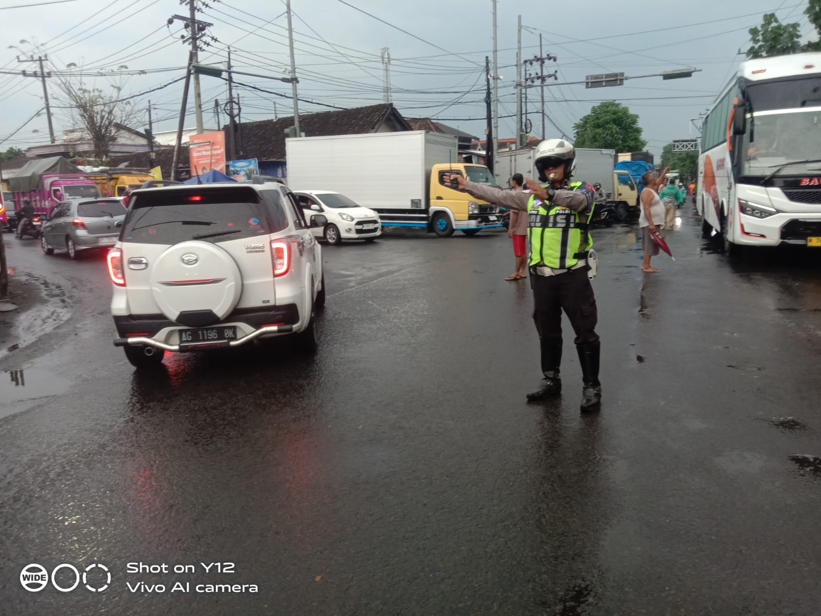 Petugas melakukan rekayasa arus secara situasional, termasuk memperlancar pergerakan kendaraan di persimpangan serta mengurai antrean yang sempat terjadi akibat hambatan di jalan.