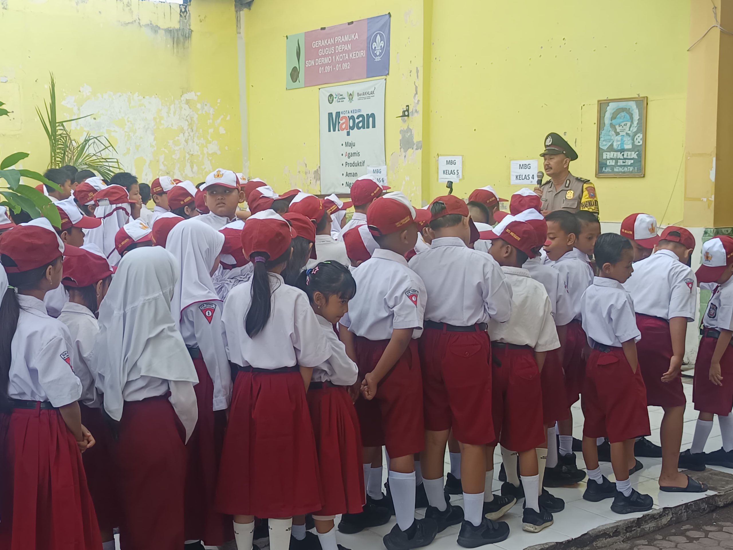 Di SDN Dermo 1, Kelurahan Dermo, Kecamatan Mojoroto, Aiptu Suhartono tampil sebagai pembina upacara dalam program “Polisi Patria” yang dimulai pukul 07.00 WIB. Dalam amanatnya, ia menekankan pentingnya kedisiplinan, tanggung jawab, serta kepatuhan terhadap orang tua dan guru sebagai fondasi utama dalam membentuk karakter siswa sejak dini.