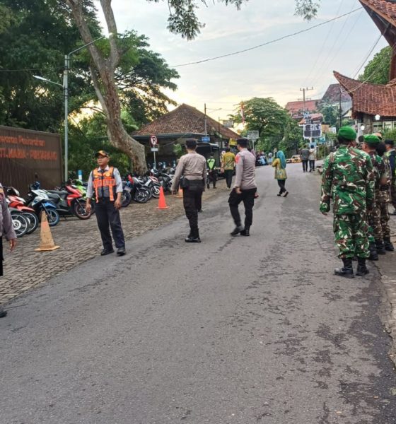 Kediriselaludihati – Perayaan Natal di Gereja Yohanes Bosko, Desa Grogol, Kecamatan Grogol, Kabupaten Kediri, Kamis (25/12/2025), berlangsung aman dan tertib. Pengamanan dilakukan oleh Regu II Pospam Gringging dalam rangka Operasi Lilin Semeru 2025 yang digelar Polres Kediri Kota.