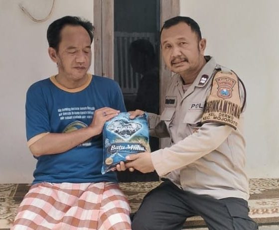 Kediriselaludihati.com – Kepolisian terus memperkuat pendekatan humanis kepada masyarakat melalui aksi nyata di lapangan. Bhabinkamtibmas Kelurahan Dermo, Polsek Mojoroto, Polres Kediri Kota, Aiptu Suhartono, melaksanakan kegiatan JUMARI (Jumat Berkah Berbagi) dengan menyalurkan bantuan beras kepada warga di Perumahan Griya Intan Permai, RT 08 RW 03, Kelurahan Dermo, Kecamatan Mojoroto, Kota Kediri, pada Jumat (6/1/2026).