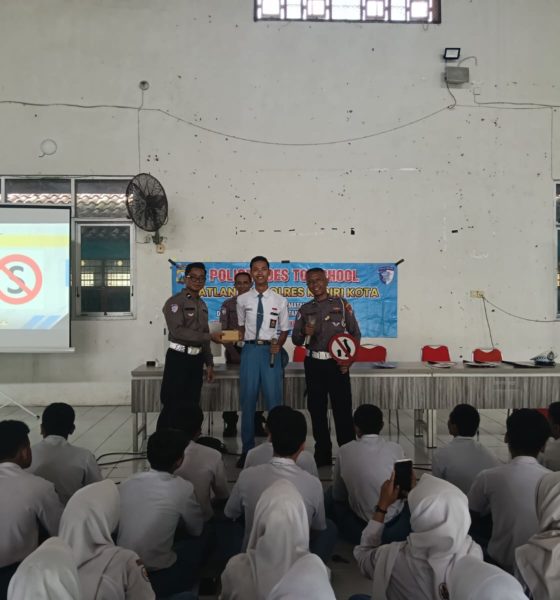Kediriselaludihati -Satuan Lalu Lintas Polres Kediri Kota menggelar kegiatan “Police Goes To School” di SMA Negeri 4 Kota Kediri, Senin (2/3/2026). Kegiatan yang berlangsung pukul 08.30 hingga 10.00 WIB itu diisi dengan materi safety riding dan etika berlalu lintas bagi para siswa.