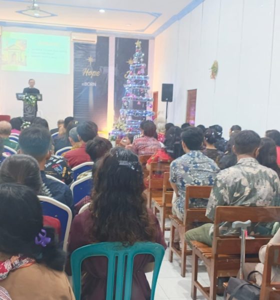 Ibadah Natal di Gereja Immanuel dipimpin oleh Pendeta Harun dengan mengusung tema “Waktu Perkenanan Tuhan.” Sekitar 150 jemaat mengikuti ibadah dengan penuh kekhusyukan.