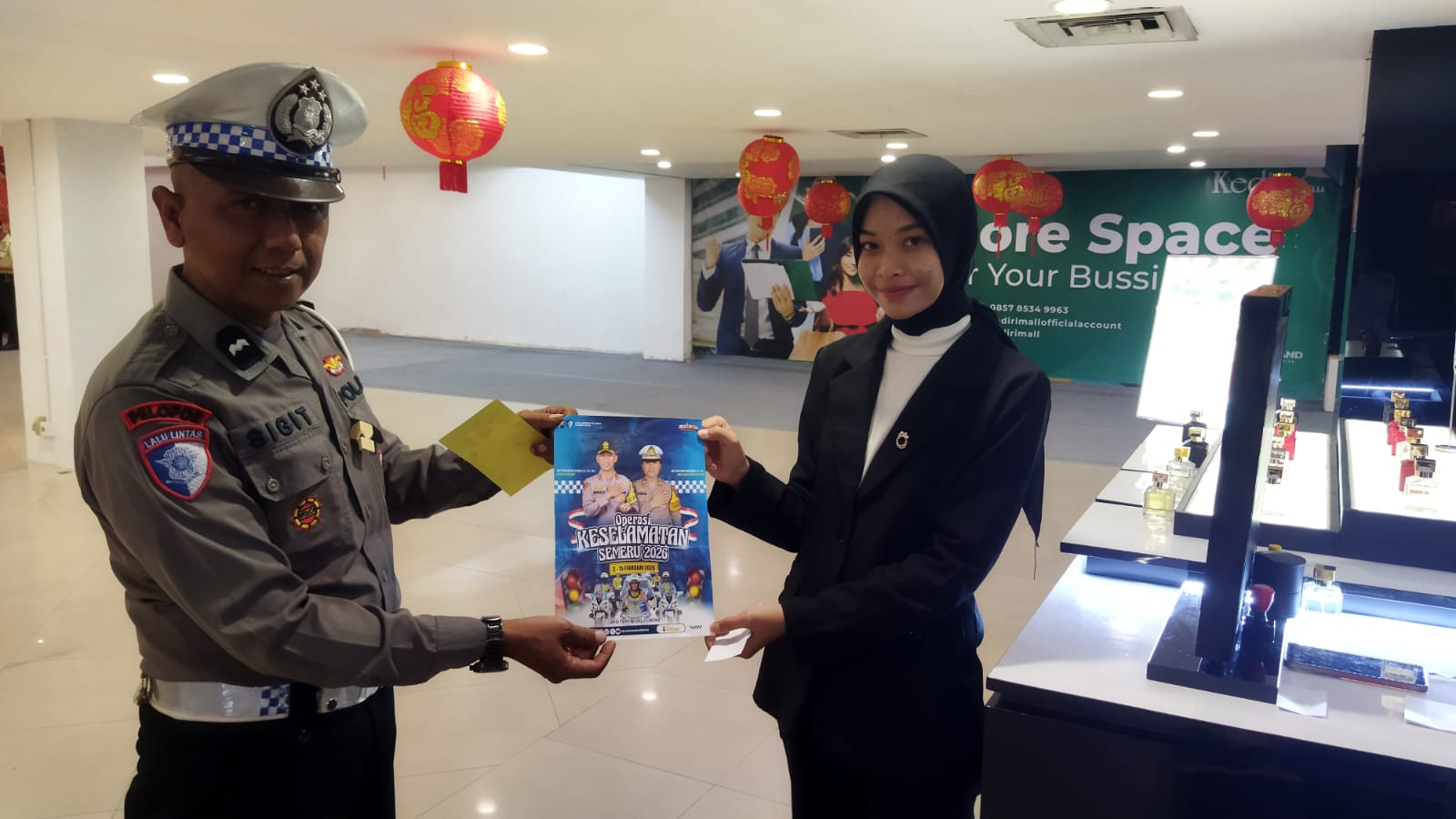 Kediriselaludihati – Satgas Preemtif Operasi Keselamatan Semeru 2026 Polres Kediri Kota menggelar kegiatan pembagian brosur dan himbauan tertib berlalu lintas di Kediri Mall, Rabu (11/2/2026) pukul 12.00 hingga 13.00 WIB. Kegiatan ini bertujuan membentuk kedisiplinan masyarakat dan menjadikan mereka pelopor keselamatan berlalu lintas jelang operasi Ketupat Semeru 2026.